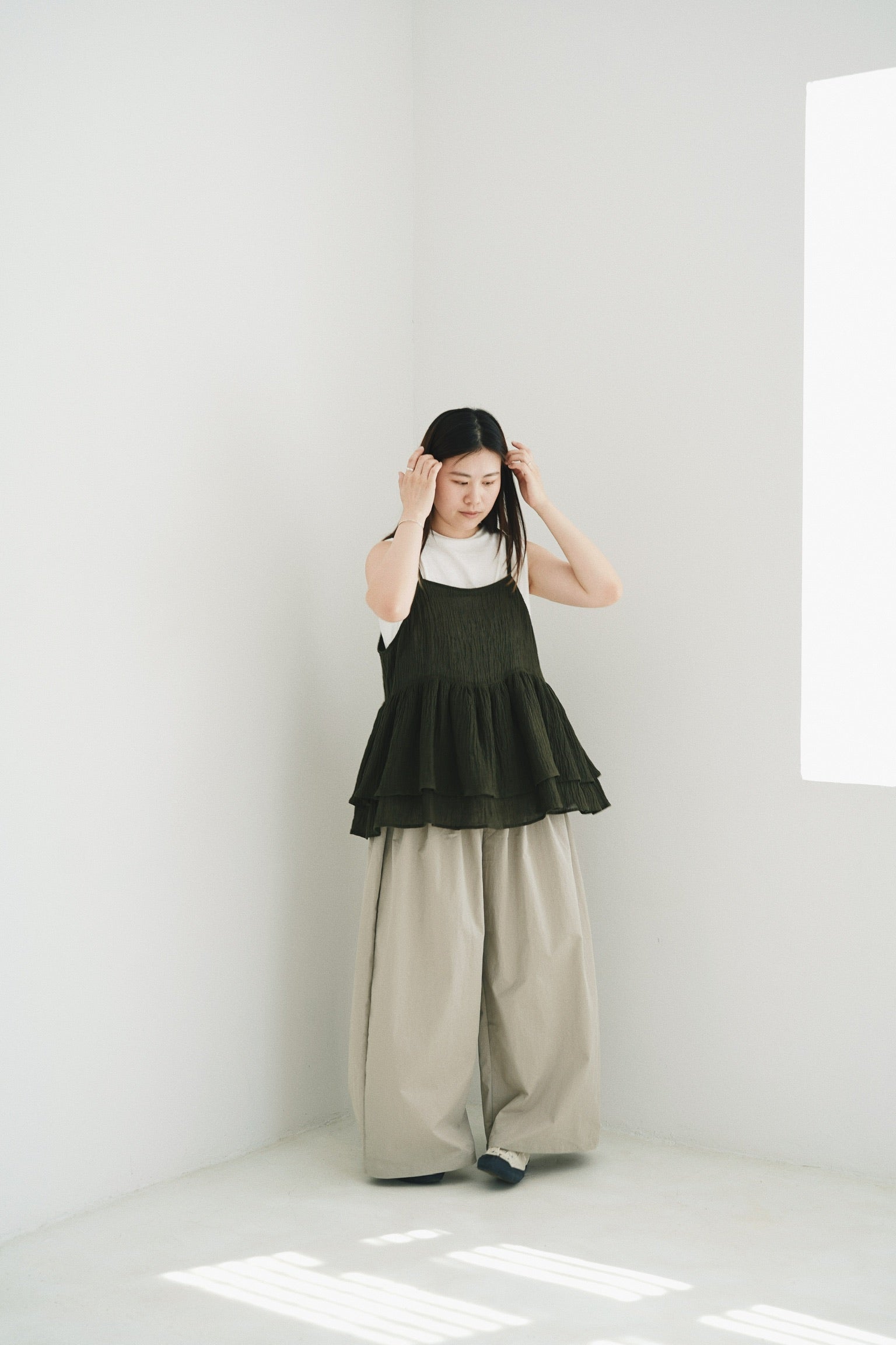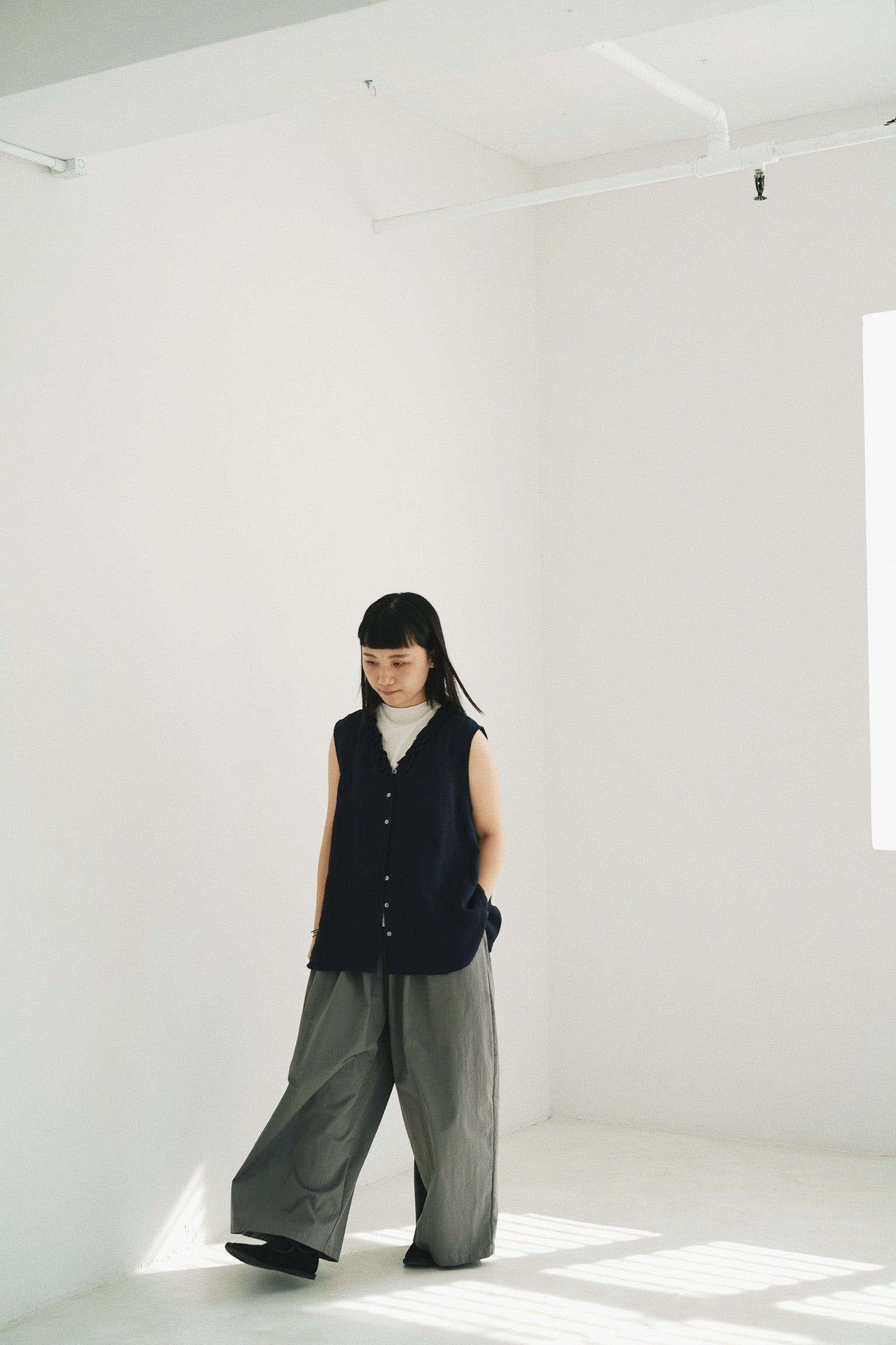 直筒打摺闊腳褲